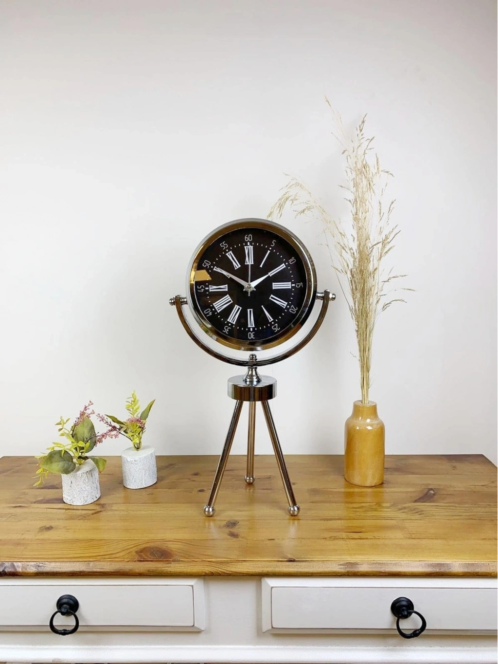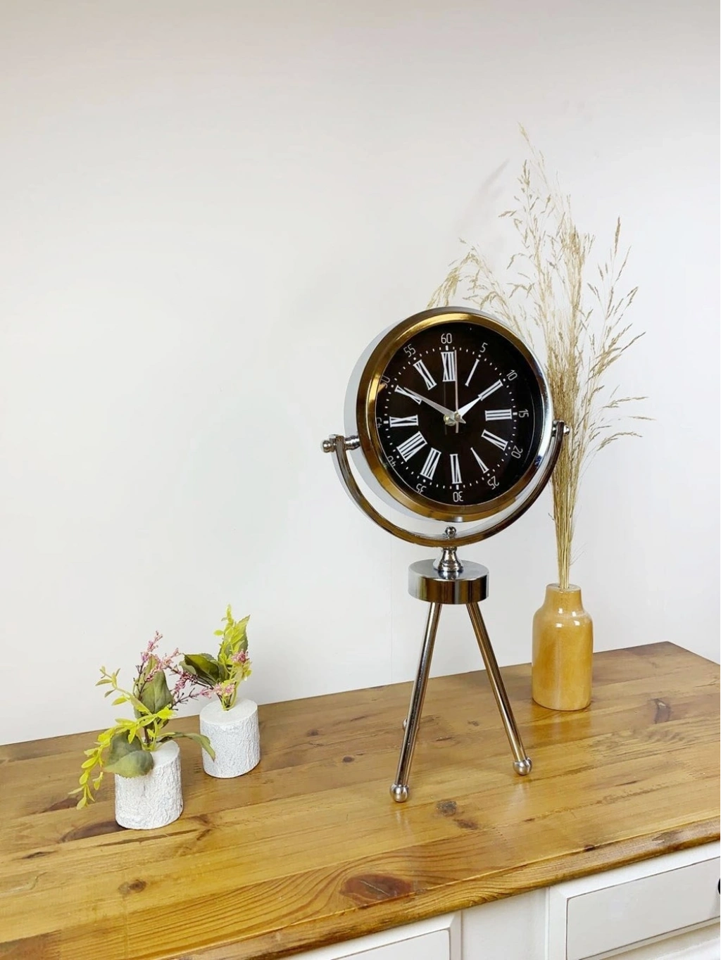 ® Krom Metal Mini Tripod Roma Rakamlı Masa Saati 45×26 cm