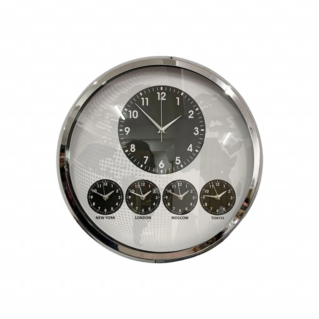 Merkezde yer alan büyük ana saat günlük kullanım için net ve kolay okunabilir yapı sunarken, alt bölümde bulunan New York – London – Moscow – Tokyo zaman göstergeleri uluslararası iş yapan firmalar için fonksiyonel bir çözüm sağlar.