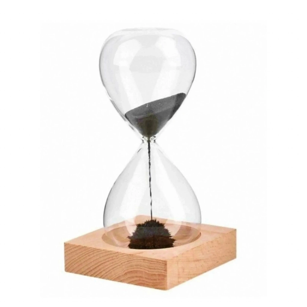 Mıknatıslı Cam Kum Saati – Dekoratif Metal Tabanlı, Manyetik Kum Akışlı Masaüstü Zaman Ölçer