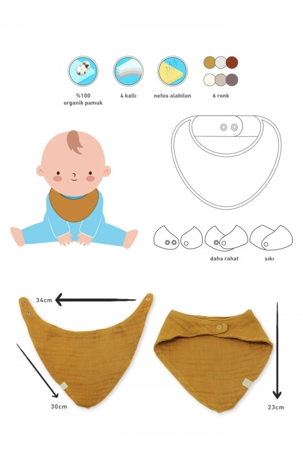 Müslin Fular Önlük 3'Lü 60102 Kiremit Bej Hardal
