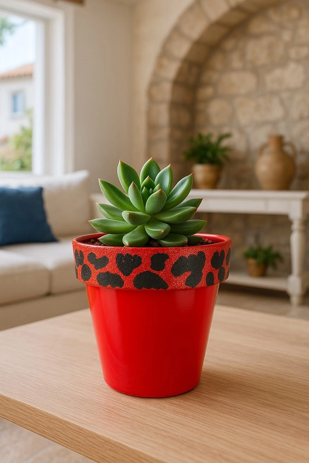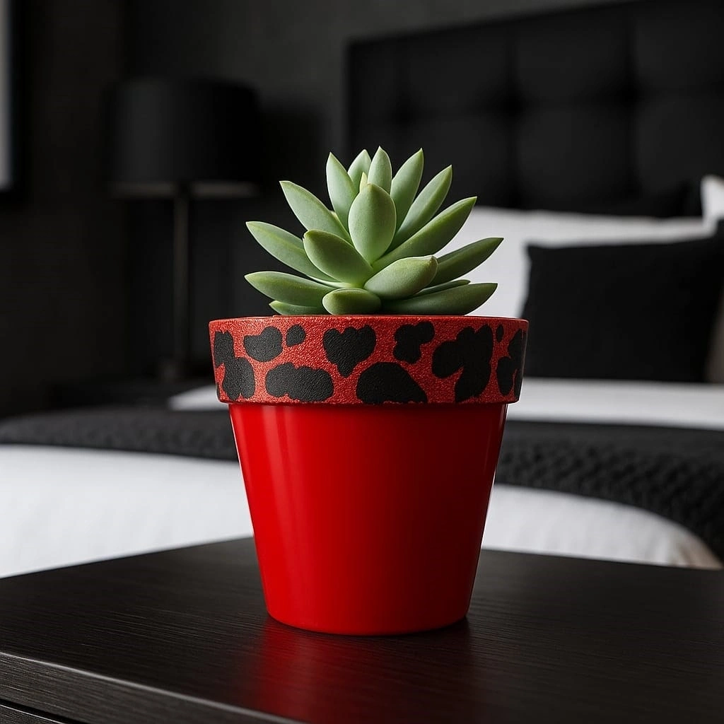 ? Ferrari Kırmızı – Leopar Detaylı Lüks Saksı & Sukulent Trend Store | Exclusive CollectionEvinizin en zarif köşesinde parlayacak, bakışları üzerine çeken bir dekor:Ferrari kırmızısının ihtişamı, leopar desenin asaleti ve şıklığı tek bir tasarımda buluştu.; Her detayı özenle çalışılmış bu özel saksı, modern yaşam alanlarında gerçek bir statement piece olarak öne çıkar.; Işığı yansıtan parlak yüzeyi, simli leopar bandı ve canlı mini sukulenti ile bulunduğu ortama sofistike bir dokunuş katar.; ✨ ÜRÜN ÖZELLİKLERİÇap: 16 cmYükseklik: 14,5 cmHacim: 1.7 LitreÜst bölüm: Özel simli leopar detaySeparatörlü tasarım: Su sızdırmaz – temiz kullanım sağlarPremium parlak Ferrari kırmızısı gövde