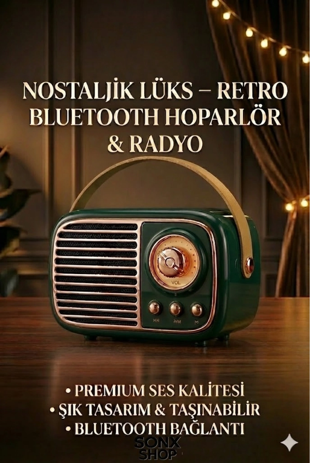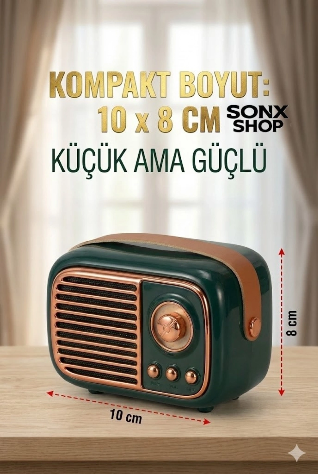 Nostaljik Retro Bluetooth hoparlör, hem estetik hem de fonksiyonel özellikleriyle günlük müzik deneyiminizi zenginleştirir. Taşınabilir yapısı sayesinde istediğiniz her yerde kullanabilir, kaliteli ses performansının tadını çıkarabilirsiniz.