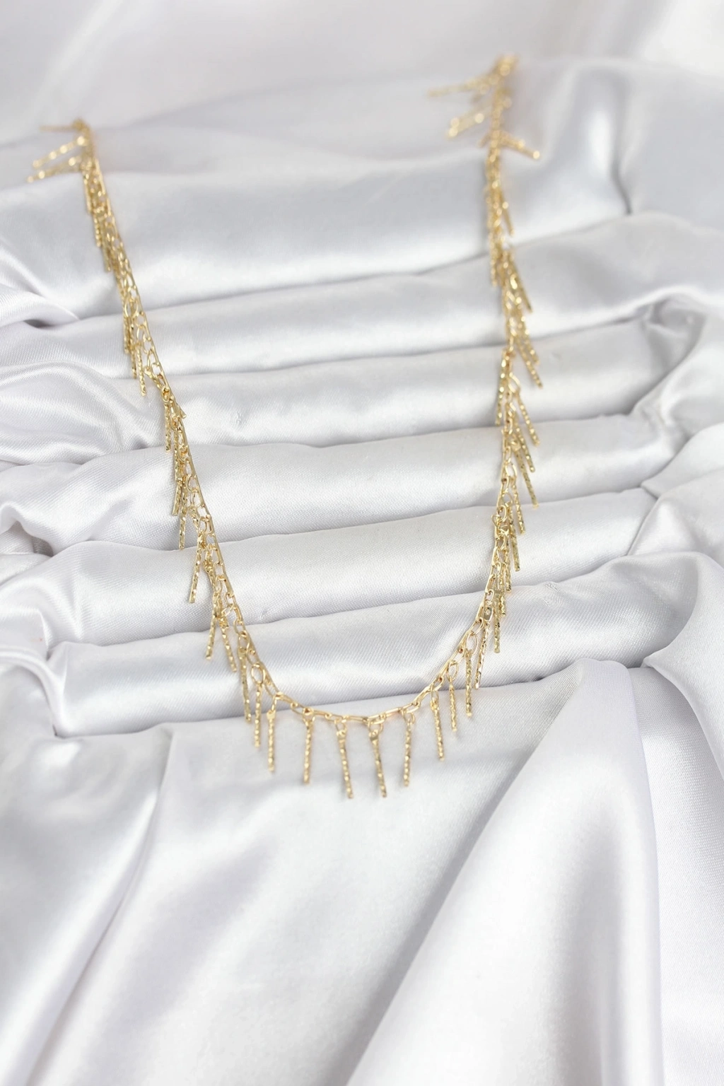 ® Pirinç Gold Renk Saçaklı Model Kadın Kolye