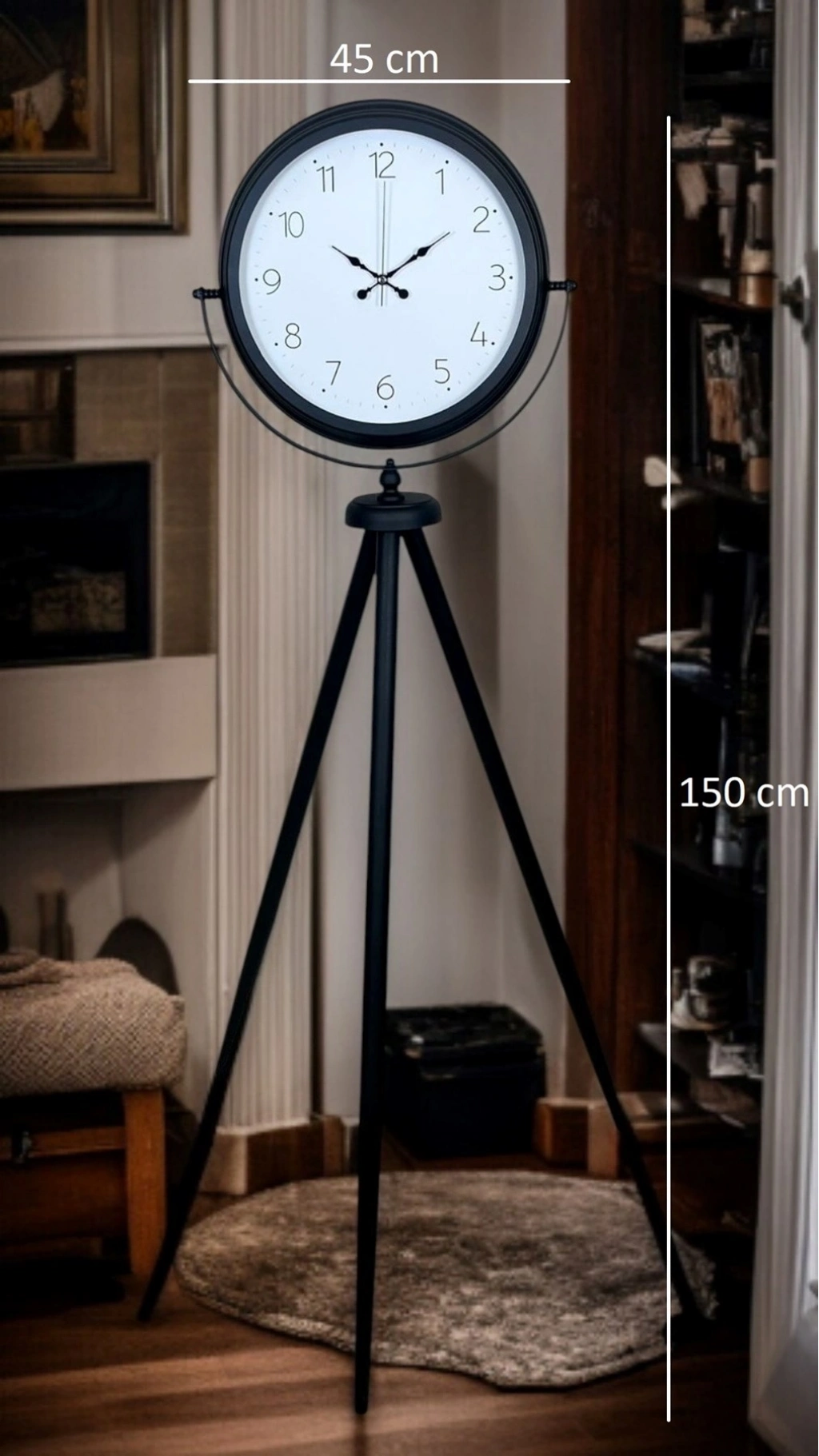 ?️ Siyah Tripod Ayaklı Dekoratif Saat – 150 × 45 cm