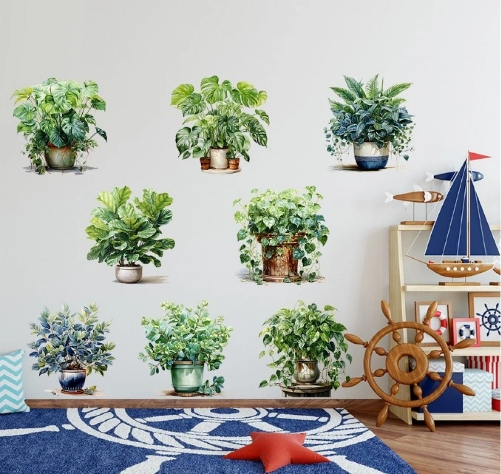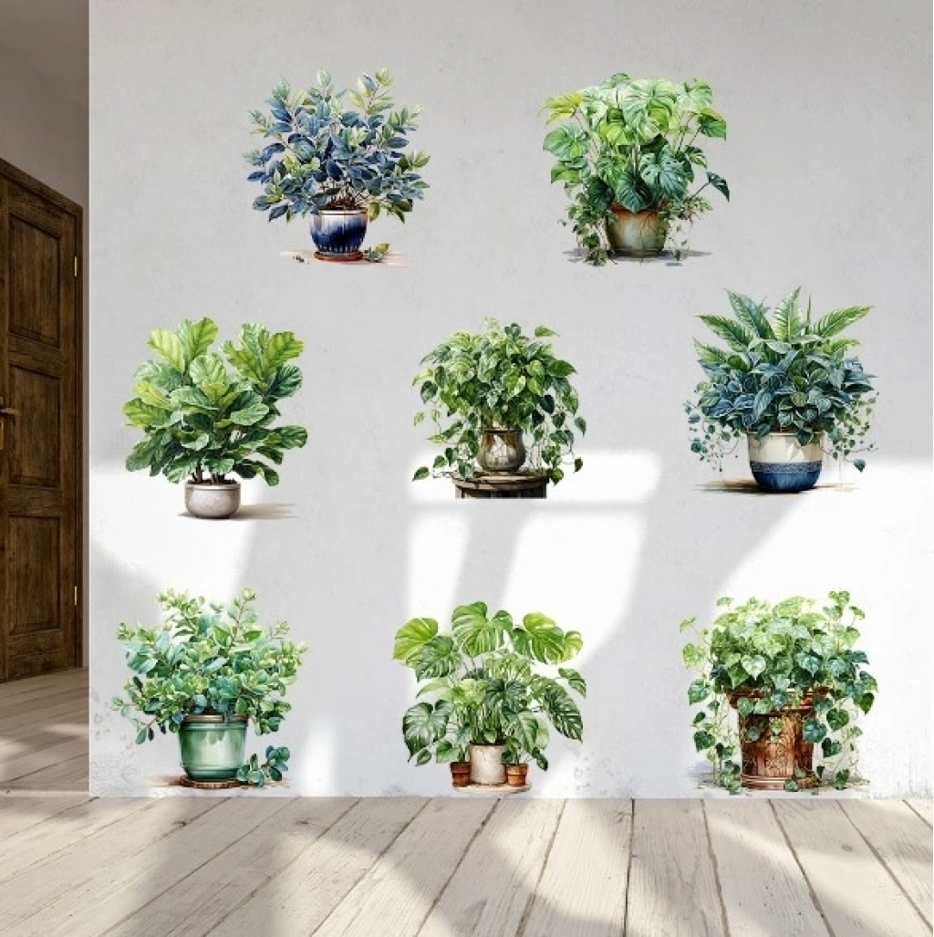 ® Saksılı Çiçek Tasarımlı 8li Sticker MC-480A