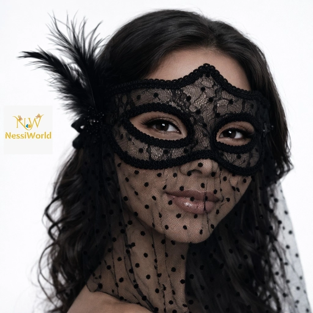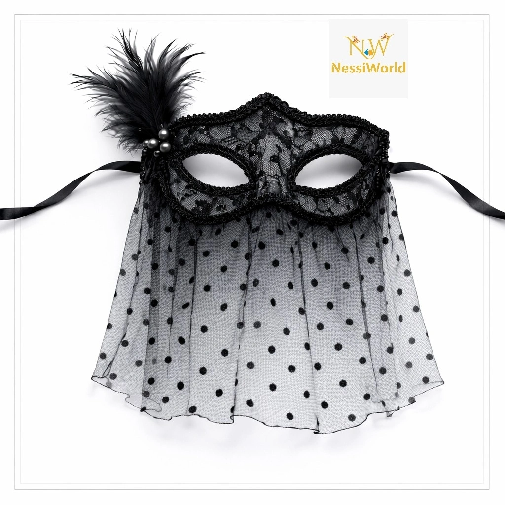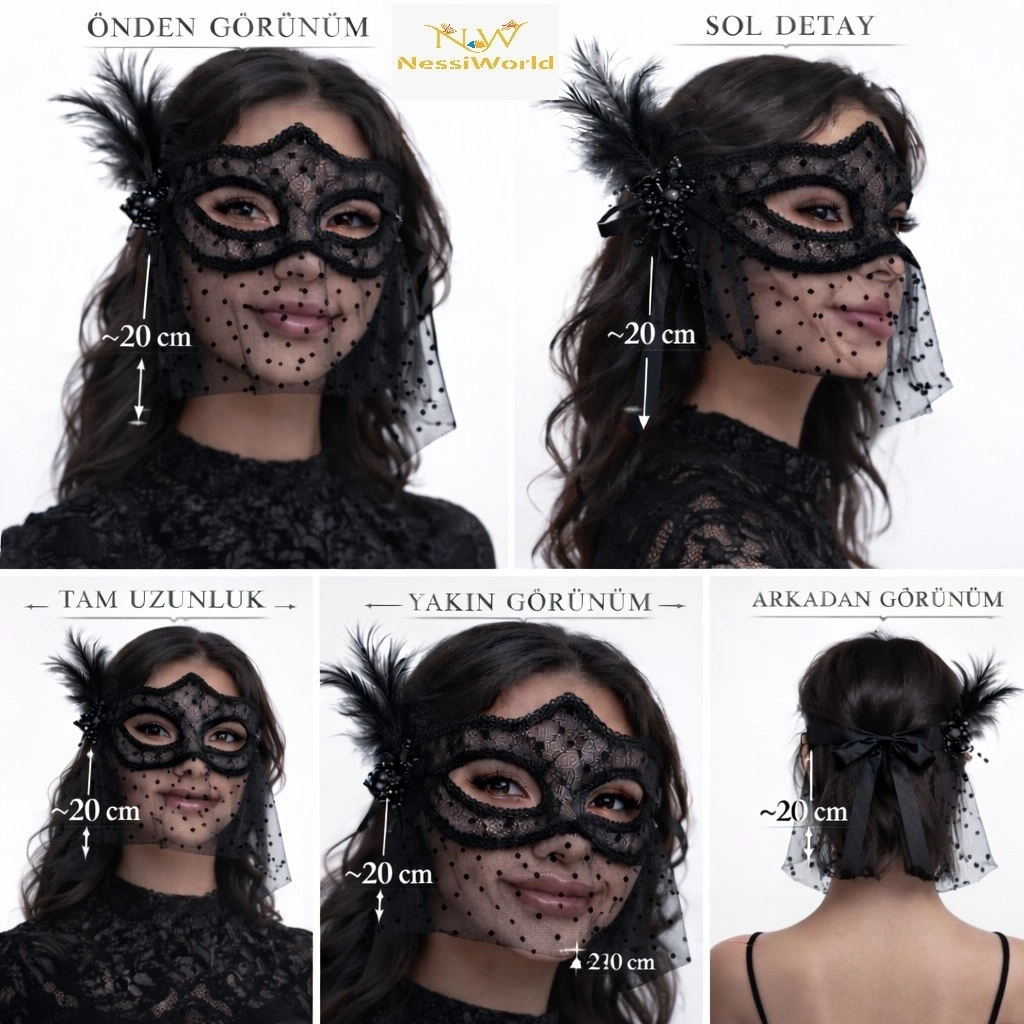 Siyah Dantel Tüllü Peçeli Parti Maskesi