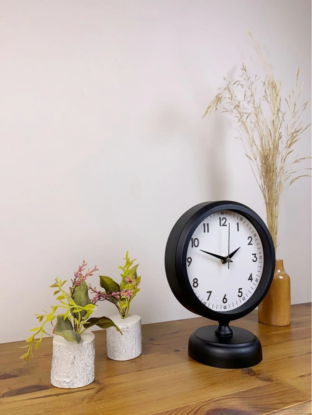 ® Siyah Metal Dekoratif Masa Saati 25×20 cm