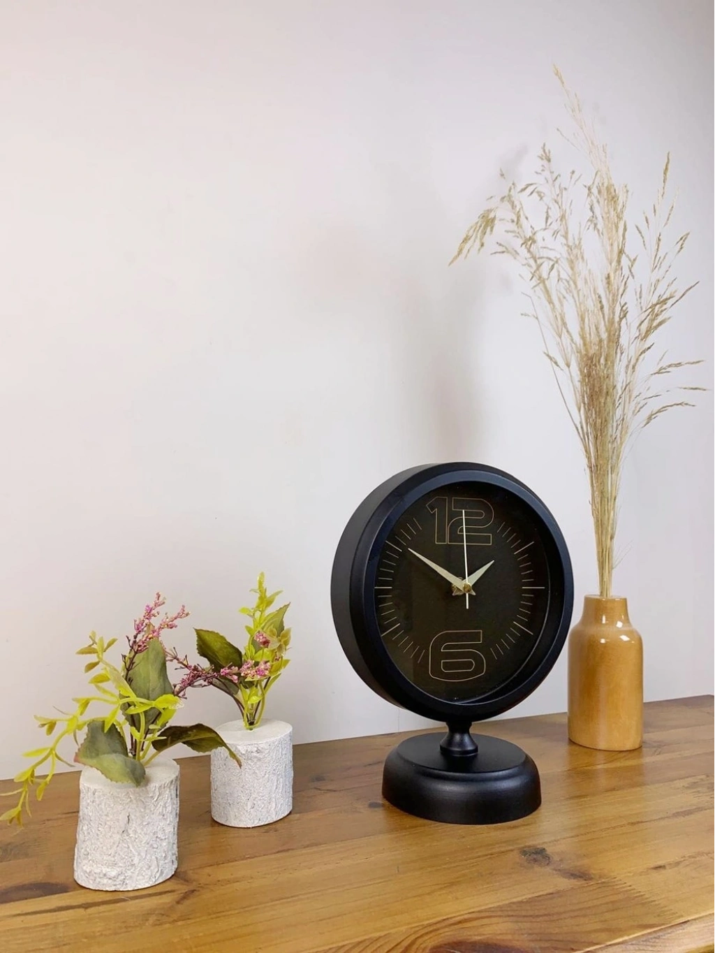 Şık ve modern tasarımıyla dikkat çeken Siyah masa saatimiz, sessiz akar saniye mekanizmasıyla konforlu bir kullanım sunar. Gerçek cam koruma paneli sayesinde uzun ömürlü ve dayanıklıdır. Estetik görünümüyle hem ev hem de iş yerleri için ideal bir dekoratif üründür.