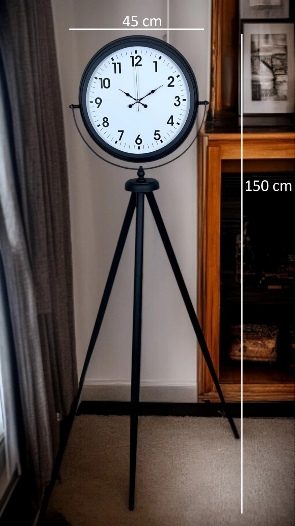 ?️ Siyah Tripod Ayaklı Dekoratif Saat – 150 × 45 cm