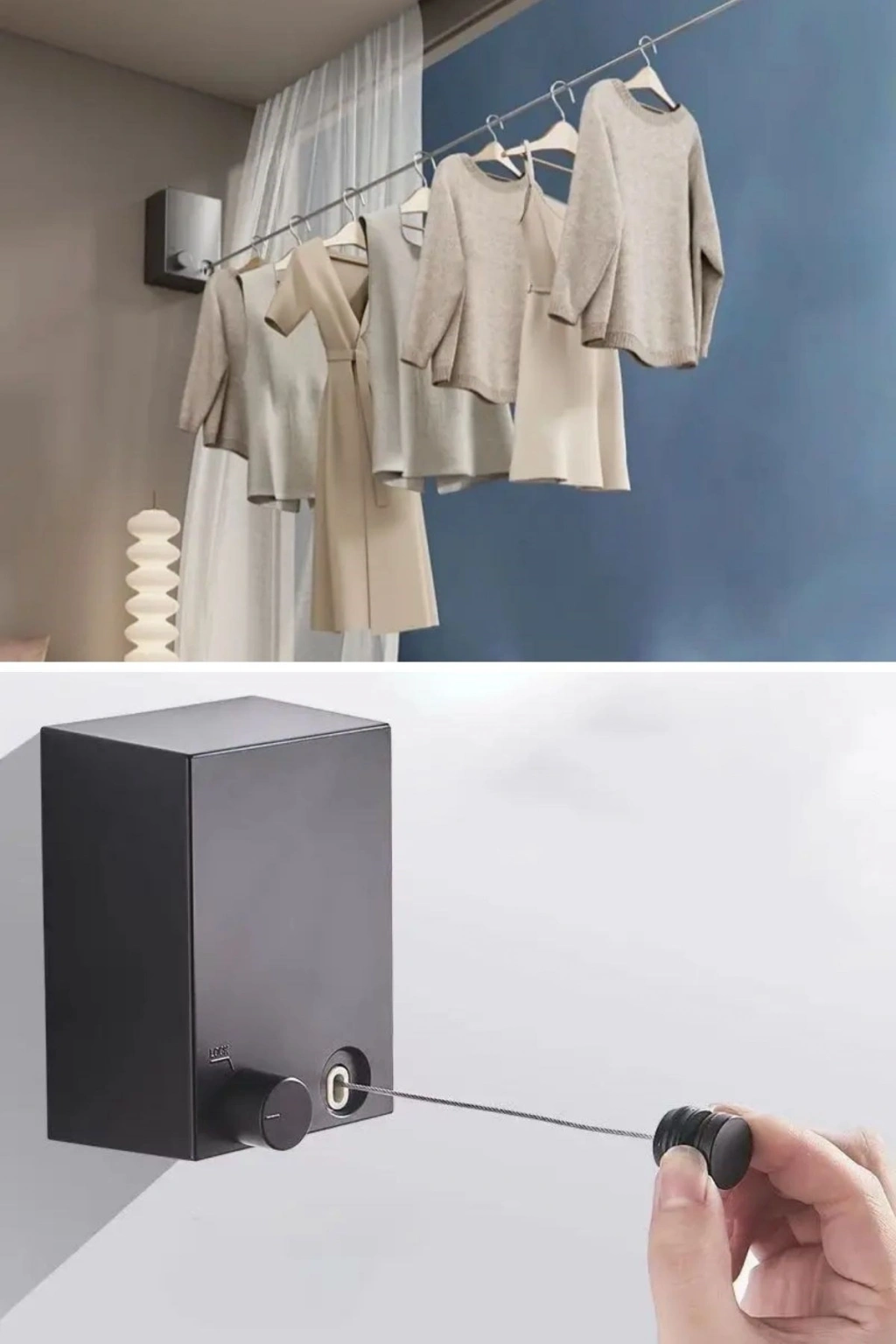 Teleskopik Çamaşır Kurutma Askısı, Pratik Geri Çekilebilir Çamaşır İpi