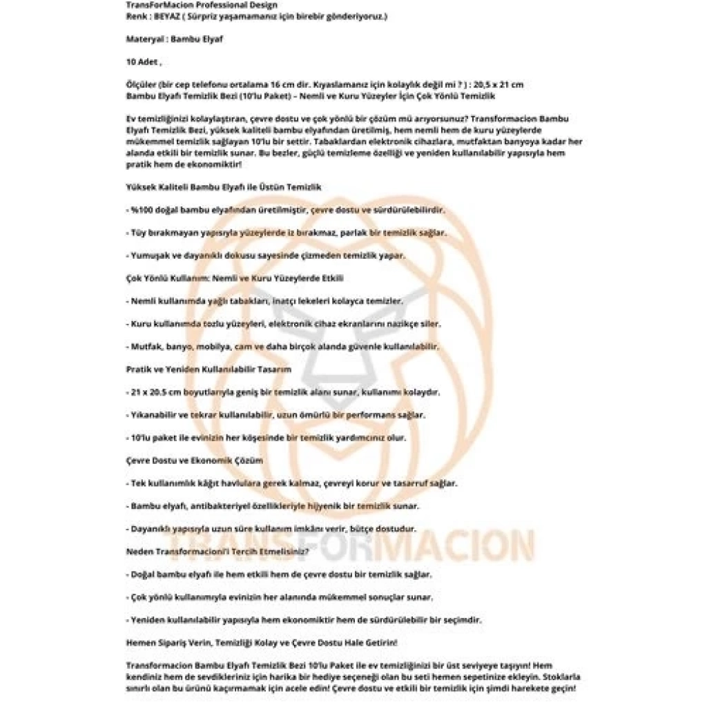 Tüysüz Temizlik Eldiveni Islak ve Kuru Temizlik Eldiveni Bambu Lifi 721474