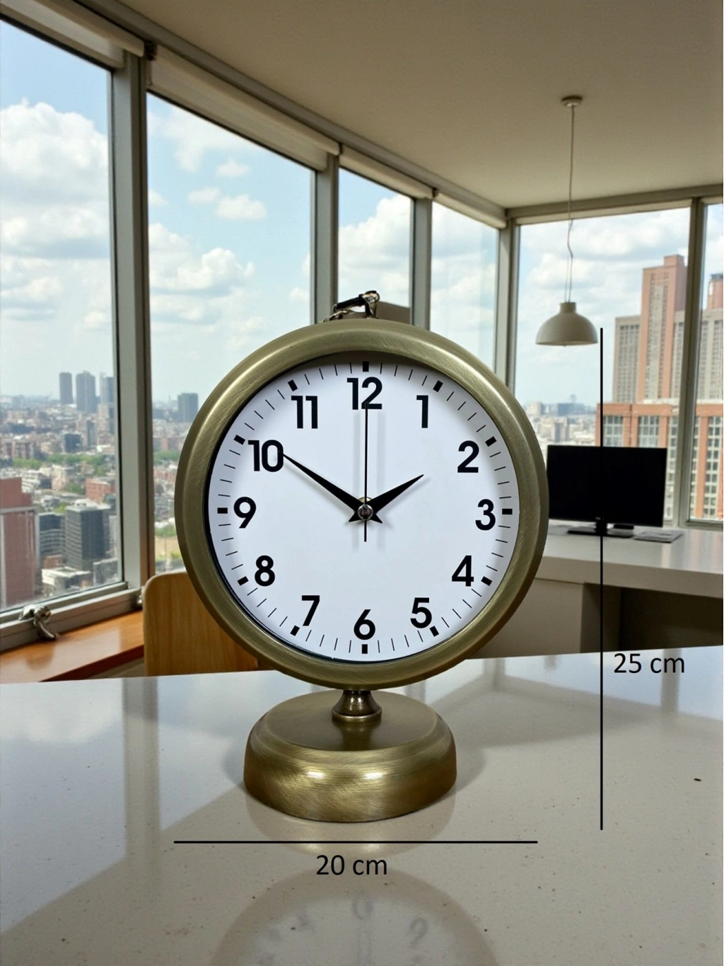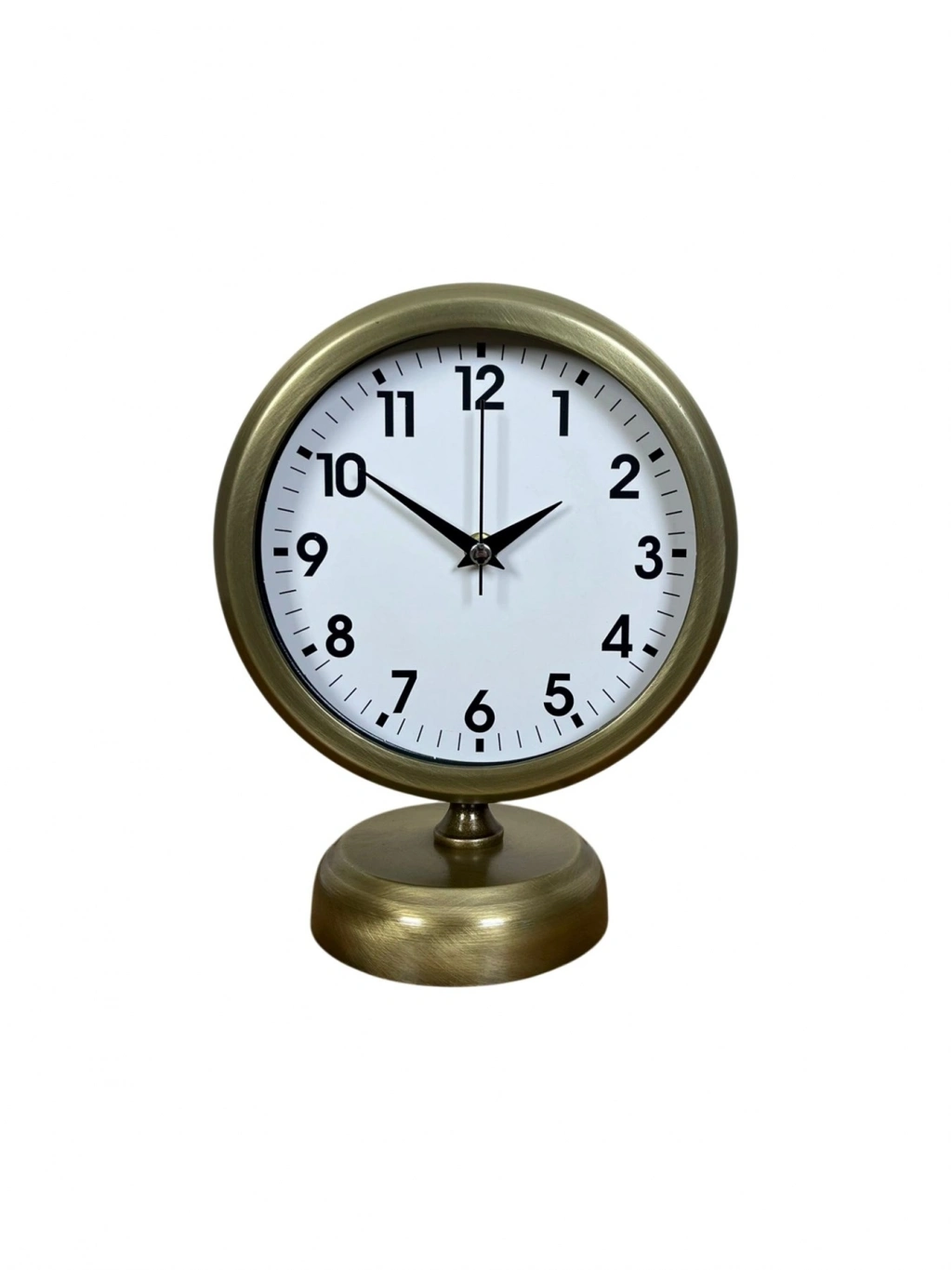 Zamansız tasarımı ve eskitme metal dokusuyla öne çıkan bu vintage masa saati, bulunduğu ortama klasik bir şıklık ve karakter katar. Hem dekoratif hem de işlevsel yapısıyla; salon, çalışma masası, ofis, kitaplık, konsol veya vitrin üzerinde estetik bir tamamlayıcı olarak kullanılabilir.