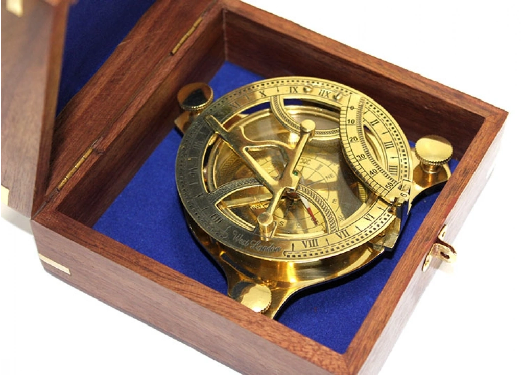 Ahşap Kutulu El Yapımı Pirinç Güneş Saati Ve Pusula