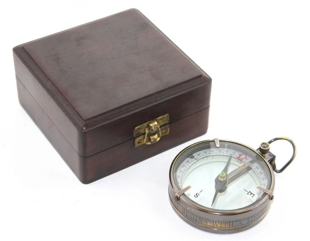 AHŞAP KUTULU PİRİNÇ PUSULA MODEL 10Ürün ÖzellikleriKlasik ve nostaljik tasarımıyla öne çıkan pirinç pusula, özel olarak hazırlanmış ahşap kutusu ile birlikte sunulmaktadır. Dayanıklı pirinç malzemeden üretilmiş olup, yüksek hassasiyetli yön belirleme özelliğine sahiptir. El işçiliğiyle detaylandırılmış ahşap kutu, pusulayı güvenle saklamanızı sağlarken dekoratif bir görünüm kazandırır. Denizcilik, kamp, doğa yürüyüşleri ve sergimiz meraklıları için ideal bir parçadır. Aynı zamanda anlamlı ve şık bir hediye seçeneği olarak da tercih edilebilir.Paket İçeriği1 adet Ahşap Kutulu Pirinç Pusula Model 10