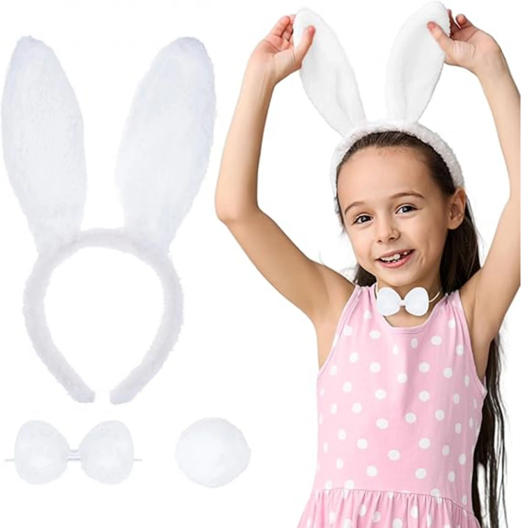 Beyaz Tavşan Kostüm Seti – Taç, Papyon, Kuyruk (12’li Paket)