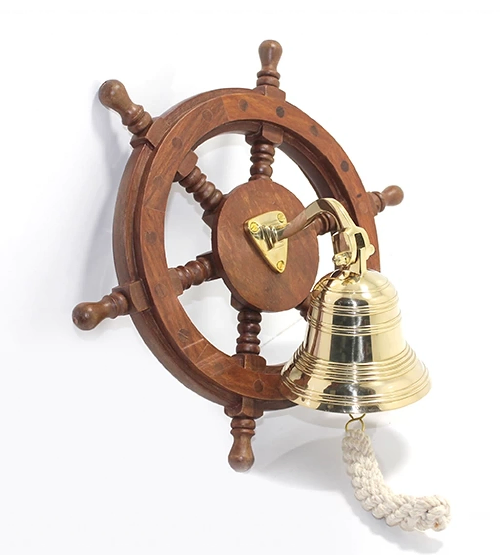 Duvara Asmalı Ahşap Dümenli Pirinç Çan