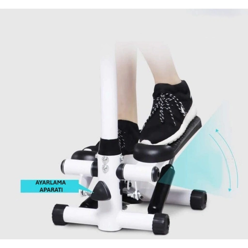 GİDONLU ADIM ATMA EGZERSİZ ALETİÜrün ÖzellikleriGidonlu Adım Atma Egzersiz Aleti, evde spor yapmayı hem keyifli hem de etkili hale getiren kompakt ve güçlü bir fitness cihazıdır. Denge sağlayan ergonomik gidon tasarımı sayesinde her yaş grubundan kullanıcıya güvenli bir antrenman deneyimi sunar. Kaydırmaz geniş pedal yüzeyi, kullanım sırasında maksimum tutuş sağlarken sessiz hidrolik sistem uzun süreli ve dayanıklı bir performans sunar. Bacak, kalça, basen ve karın bölgesini aynı anda çalıştıran bu özel mekanizma metabolizmayı hızlandırarak daha kısa sürede yağ yakımını destekler.Yüksek kaliteli malzemelerden üretilen gövdesi sağlam ve uzun ömürlü kullanım sunarken, zemin dostu ayakları cihazın kaymasını engelleyerek ev içi kullanımda güvenliği artırır. Üzerindeki dijital sayaç adım, süre ve kalori ölçümü yaparak kullanıcıların antrenman takibini kolaylaştırır. Sessiz çalışma sistemi sayesinde apartman ve ofis ortamlarında da sorunsuz şekilde kullanılabilir.Kompakt tasarımı sayesinde kullanılmadığında kolayca kaldırılabilir ve yer kaplamaz. Evde hızlı, etkili ve güvenli bir kardiyo yapmak isteyen herkes için ideal bir çözümdür.Paket İçeriği1 adet gidonlu adım atma egzersiz aleti