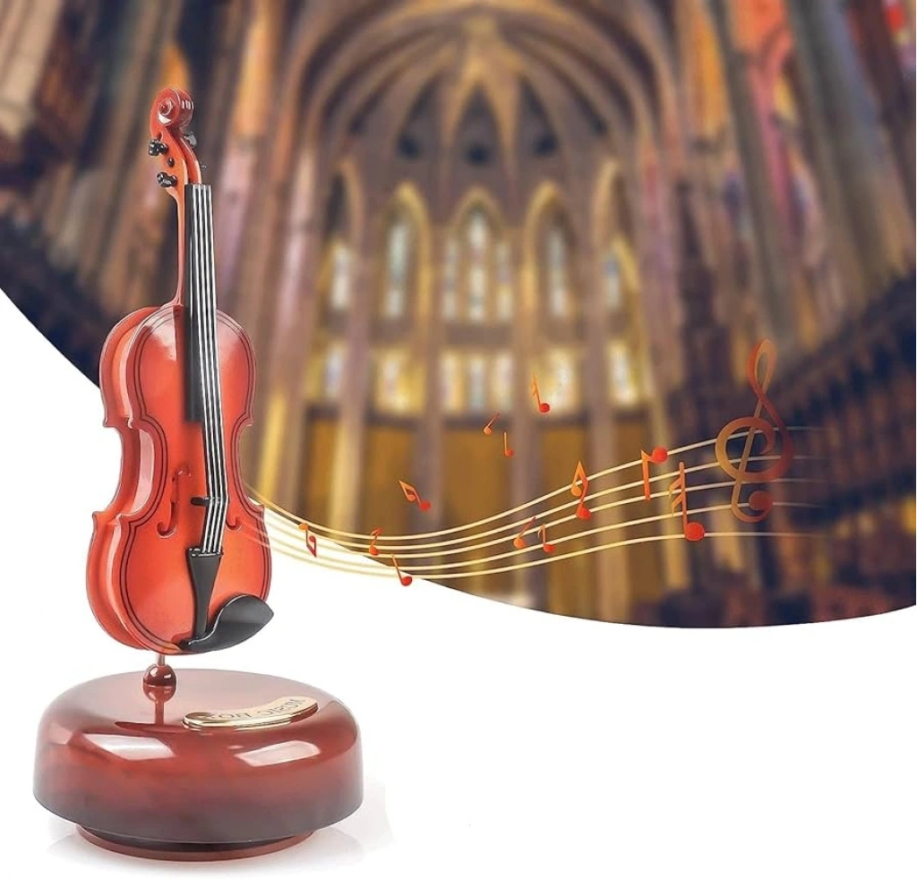 HAREKETLİ VİOLİN MÜZİK KUTUSUBu özel tasarımlı müzik kutusu, ahşap görünümlü plastik malzemeden yapılmıştır. İçerisinde yer alan mekanizma sayesinde, Beethoven'ın "Für Elise" adlı eserini çalar.Zarif bir keman şekline sahip olan bu müzik kutusu, hem estetik bir görünüme sahiptir hem de hoş bir melodi sunar.Müzik kutusunun detaylı ahşap deseni, göz alıcı bir tasarım sunarken, dayanıklı plastik malzeme ona uzun ömürlü bir kullanım sağlar. Violin şeklindeki tasarımı, sanat ve müziği bir araya getirerek estetik bir ambiyans oluşturur. "Für Elise" melodisi, klasik müzikseverlere nostaljik bir deneyim sunar. Bu özel müzik kutusu, zarif bir dekorasyon parçası olmanın yanı sıra duygusal bir bağlam da sunar.Paket İçeriği1 adet violin müzik kutusu