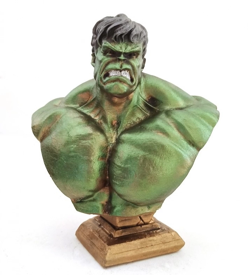 HULK BÜST KÜÇÜK BOYÜrün ÖzellikleriHulk Büst Küçük Boy, 12 cm boyutunda olup, Marvel evreninin en güçlü süper kahramanlarından biri olan Hulk’ın detaylı ve etkileyici bir figürüdür. Yüksek kaliteli malzemeden üretilmiş olup, dayanıklı ve uzun ömürlüdür. Hulk’un öfkeli yüz ifadesi, kas detayları ve ikonik yeşil cildi, bu büste gerçekçi ve güçlü bir görünüm kazandırmaktadır. Marvel hayranları ve sergimizcular için mükemmel bir parçadır. Masa, raf veya vitrin gibi alanlarda sergilenmeye uygundur. Hem sergimizluk hem de dekoratif amaçlarla kullanılabilecek şık ve güçlü bir figürdür.Paket İçeriği1 adet Hulk Büst Küçük Boy