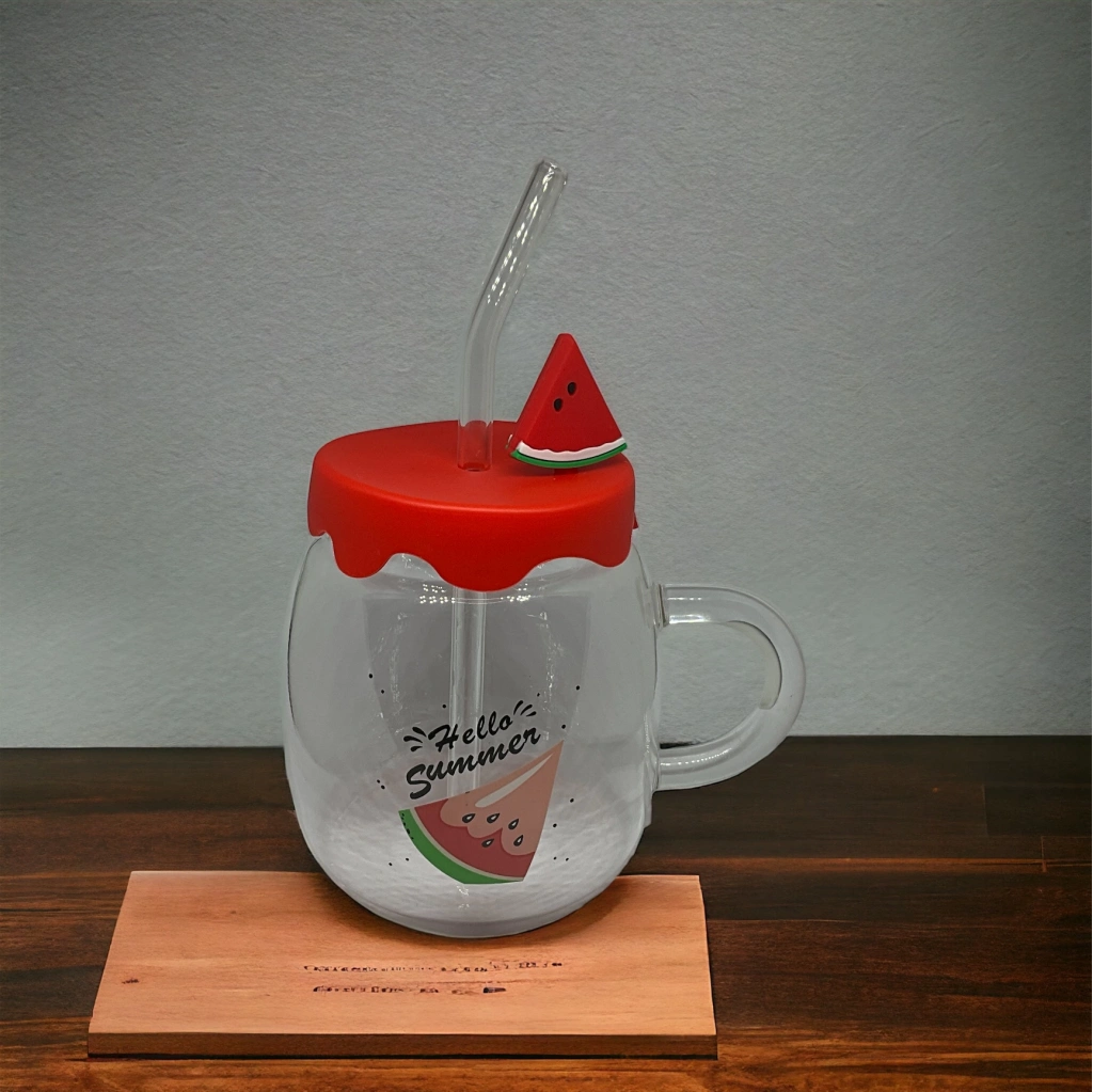 KARPUZ TASARIMLI KUPA BARDAKKarpuz Tasarımlı Cam Kupa Bardak, silikon kapaklı bir üründür ve üzerinde silikon karpuz figürü bulunan kapak ile öne çıkar. Cam malzemeden üretilmiş olan bardak, sağlam ve dayanıklıdır. Ayrıca, içeceğinizi rahatça içebilmeniz için cam pipet de içermektedir. Bu tasarım, eğlenceli ve şık bir görünüm sunarak içecek keyfinizi artırır.450 ml kapasitesi vardır.Karpuz figürlü silikon kapak, içeceğinizin sıcaklığını koruma özelliğine ek olarak, bardağın taşınabilirliğini artırır ve istenmeyen dökülmeleri önler. Cam pipet, içeceğinizi rahatça içmenizi sağlarken, ürüne şık bir dokunuş katar. Bu kupa bardak, hem pratik hem de görsel açıdan çekici bir deneyim sunar. Karpuz teması, içme deneyiminizi daha eğlenceli hale getirirken, cam malzeme de kaliteli ve sağlıklı bir kullanım sunar.Paket İçeriği1 adet karpuz tasarımlı kupa bardak