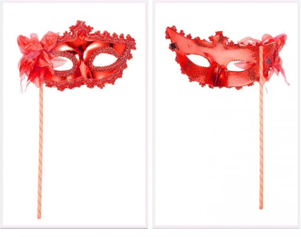 Kırmızı Işıltılı Tutmalı Fotoğraf Çekimi Maskesi