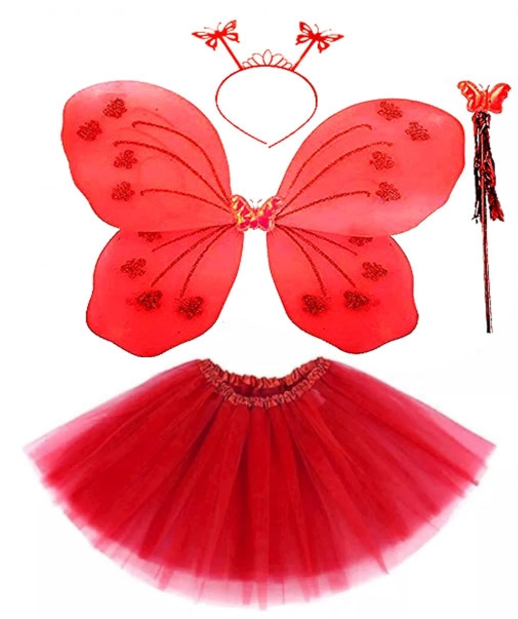 Kırmızı Kelebek Kostümü - Kostüm Aksesuar Seti 4 Parça