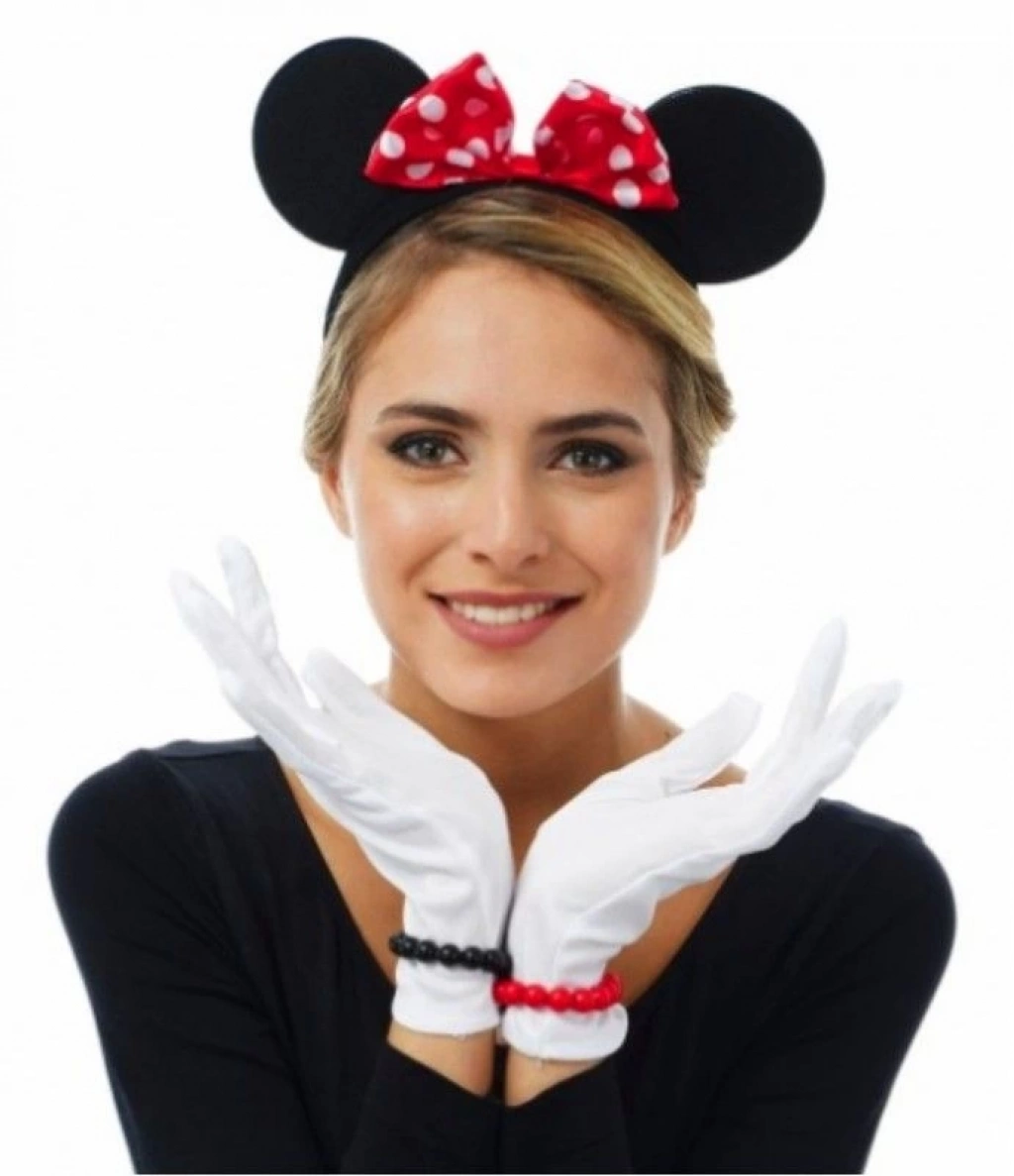 Kırmızı Fiyonklu Minnie Mouse Tacı ve Beyaz Eldiven Seti