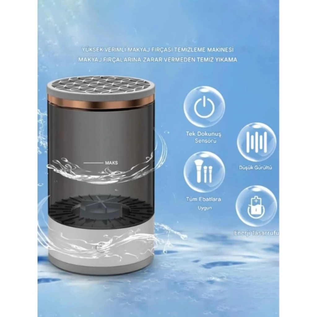 MAKYAJ FIRÇASI TEMİZLEME MAKİNESİÜrün ÖzellikleriMakyaj fırçası temizleme makinesi, fırçalarınızı zahmetsizce temizlemenizi sağlayan pratik ve yenilikçi bir çözümdür. Tüm fırça boyutlarına uyumlu olarak tasarlanmıştır ve makyaj fırçalarına zarar vermeden derinlemesine temizlik sunar. Su haznesi üzerinde maksimum seviye göstergesi bulunur ve içerisine fırçalar kolayca yerleştirilir. Tek dokunuş sensörü sayesinde cihaz hızlıca çalışmaya başlar ve düşük gürültülü motoru ile konforlu bir kullanım sağlar. Enerji tasarruflu yapısı sayesinde çevre dostu bir üründür. Günlük makyaj rutininin hijyenik bir şekilde devam etmesi için ideal bir üründür.Paket İçeriği1 Adet Makyaj Fırçası Temizleme Makinesi