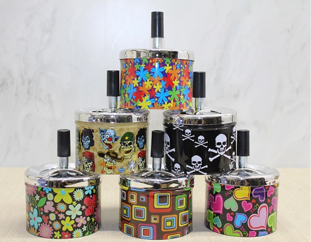 Metal Renkli Basmalı Küllük Yuvarlak