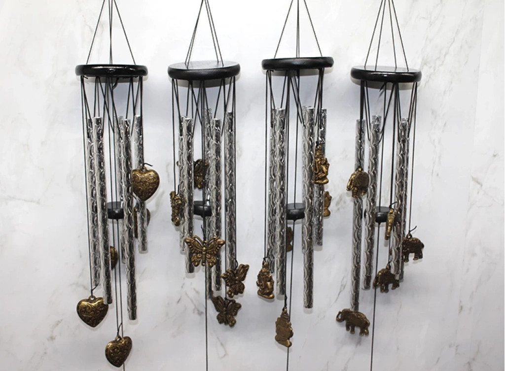 METAL RÜZGAR ÇANI MODEL 3Ürün ÖzellikleriMetal Rüzgar Çanı Model 3, bronz detaylı süslemeleri ve kabartmalı metal boruları ile göz alıcı bir tasarıma sahiptir. Farklı sembollerle zenginleştirilmiş çanlar, hafif esintilerle huzur verici melodiler oluşturur. Dekoratif kalp, kelebek, fil ve mistik figürler, hem estetik hem de manevi anlam taşır. Bahçe, balkon, veranda veya iç mekân dekorasyonu için ideal bir aksesuardır.Paket İçeriği1 Adet Metal Rüzgar Çanı
