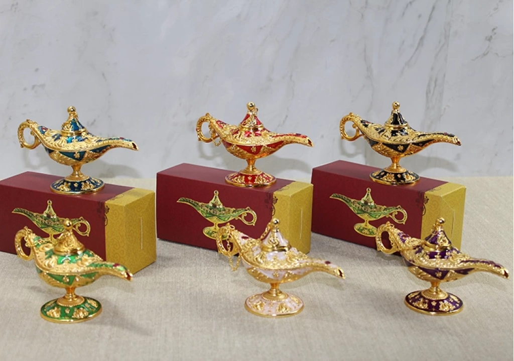 MİNELİ METAL ALAADDİN LAMBASI MODEL 4Ürün ÖzellikleriMineli Metal Alaaddin Lambası, otantik tasarımı ve parlak renkli detaylarıyla dekorasyonunuza nostaljik bir hava katıyor. Dayanıklı metal malzemeden üretilmiş olup, üzerindeki ince işçilik ve mineli desenler estetik bir görünüm sunar. 16 cm boyutuyla masa, raf veya vitrin gibi alanlarda şık bir aksesuar olarak kullanılabilir. Koleksiyon meraklıları ve hediyelik eşya arayanlar için ideal bir seçimdir.Not: Ürün farklı renklerde mevcuttur ve var olan renk gönderilmektedir.Paket İçeriği1 Adet Mineli Metal Alaaddin Lambası