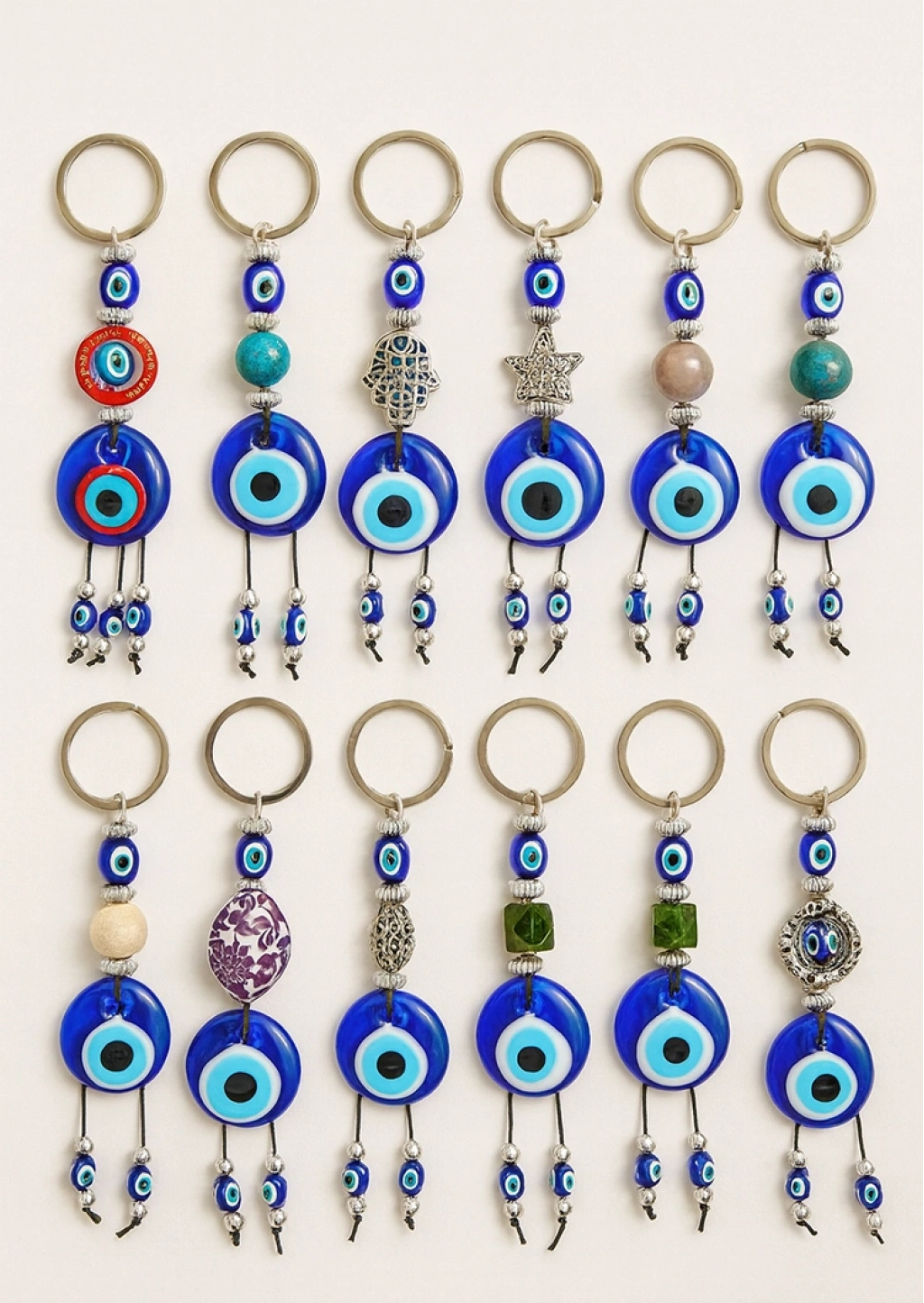 NAZAR BONCUĞU ANAHTARLIKÜrün ÖzellikleriNazar Boncuğu Anahtarlık, geleneksel nazar sembolünü modern tasarımlarla buluşturan şık ve anlamlı bir aksesuar seçeneğidir. Her biri farklı detaylarla hazırlanan modeller arasında seçim yapılamaz, görselde yer alan tasarımlardan biri karışık şekilde gönderilir. Çantada, araç anahtarlığında, ev anahtarlığında ya da dekoratif bir obje olarak kullanılabilen bu anahtarlık, hem kendiniz hem de sevdikleriniz için hoş bir hediye alternatifi sunar. Kaliteli malzemelerle üretilmiş dayanıklı yapısı ve renkli boncuk detaylarıyla dikkat çeken ürün, nazara karşı koruyucu ve sembolik anlamıyla da tercih edilir. Hem günlük kullanımda hem de özel günlerde şık bir tamamlayıcı aksesuar olarak öne çıkar.Paket İçeriği1 Adet Nazar Boncuğu Anahtarlık