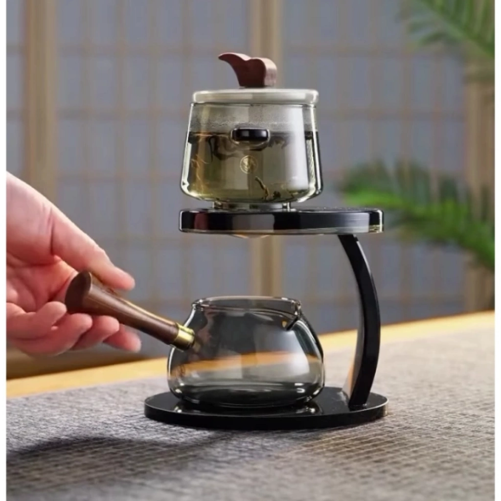 OTOMATİK BİTKİ ÇAYI DEMLİĞİÜrün ÖzellikleriŞık ve işlevsel tasarımıyla dikkat çeken Otomatik Bitki Çayı Demliği, doğal bitki ve yaprak çaylarını pratik bir şekilde demlemek için özel olarak tasarlanmıştır. Dayanıklı ve yüksek kaliteli cam malzemeden üretilmiş olan bu demlik seti, sıcaklığa karşı dirençli yapısıyla uzun ömürlü kullanım sağlar.Üst kısmında yer alan demlik, çay yapraklarının aromasını ve rengini ideal şekilde ortaya çıkarır. Çevirme mekanizması sayesinde demlik ters çevrildiğinde, demlenen çay otomatik olarak alt cezveye akar. Bu sistem, damlatmadan ve taşırmadan kolay bir kullanım sağlar. Alt kısımda bulunan cezve, şeffaf cam yapısıyla çayın yoğunluğunu gözlemlemenize olanak tanır.Modern metal standı, ürüne estetik bir görünüm kazandırırken kullanım kolaylığı sağlar. Ahşap detaylara sahip ergonomik sap tasarımı, sıcaklık geçişini engelleyerek güvenli bir tutuş sunar. Hem evde hem ofiste, özellikle bitki çayı severler için ideal bir seçimdir.Paket İçeriği1 adet Otomatik Bitki Çayı Demliği