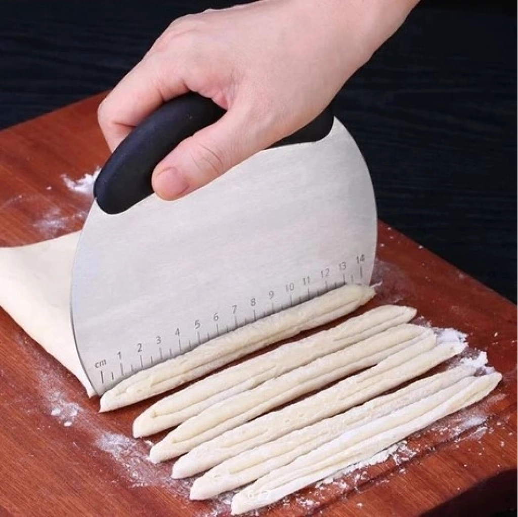 PASLANMAZ ÇELİK HAMUR KESME VE ŞEKİLLENDİRME SPATULASIÜrün AçıklamasıPaslanmaz çelikten üretilmiş bu hamur kesme spatulası, mutfakta pratiklik ve dayanıklılığı bir araya getirir. Hamur kesme, şekillendirme ve temizleme gibi işlemler için mükemmel bir araçtır. Üzerinde bulunan ölçü çizelgesi sayesinde eşit parçalar kesmek kolaylaşır. Ergonomik tutma yeri ile rahat bir kullanım sağlar. Dayanıklı yapısı sayesinde uzun ömürlüdür ve mutfak işlerinizi kolaylaştırır. Profesyonel ve ev mutfağı kullanımı için idealdir.Ürün ÖzellikleriÜrün tipi: Hamur kesme ve şekillendirme spatulasıMalzeme: Paslanmaz çelik ve ergonomik tutma yeriKullanım Alanı: Hamur kesme, şekillendirme, temizlemeEk Özellikler: Ölçü çizelgeli tasarım, dayanıklı yapı, rahat tutuşPAKET İÇERİĞİ1 x Paslanmaz çelik hamur kesme spatulası