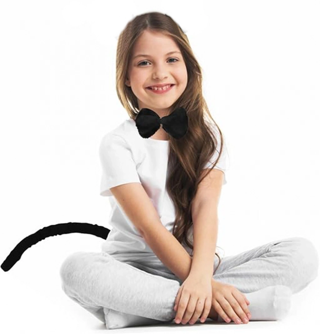 Peluş Siyah Renk Kuyruk ve Papyon Yetişkin Çocuk Uyumlu