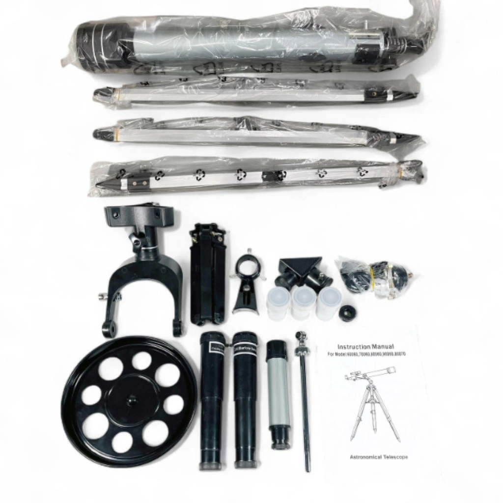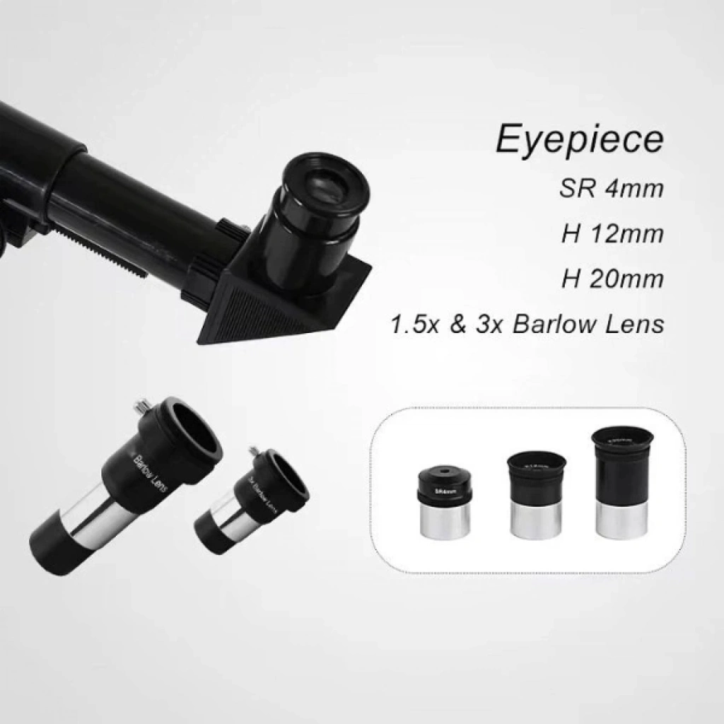 PROFESYONEL ASTRONOMİ GÖZLEM TELESKOPUÜrün ÖzellikleriProfesyonel astronomi gözlem teleskopu, uzay meraklıları için ideal bir gözlem aracıdır. Refraktör tasarımı sayesinde net ve detaylı görüntüler sunar. 60 mm objektif lens ve 700 mm odak uzaklığı ile ay, yıldızlar ve gezegenlerin ayrıntılarını yakından inceleyebilirsiniz. H6 mm, H10 mm ve H25 mm göz mercekleriyle farklı büyütme seviyelerinde gözlem yapabilir, ayrıca 1.5x ve 3x barlow lens sayesinde büyütme gücünüzü artırabilirsiniz. 90° zenith aynası ile rahat bir gözlem imkânı sağlarken, 5x24 dürbün tipi finderscope hedefleri kolayca bulmanıza yardımcı olur. 2 kademeli uzun tripod ile sağlam bir kullanım sunar. Eğitim, hobi ve profesyonel gözlemler için kullanışlı bir üründür.Paket İçeriği1 adet Profesyonel Astronomi Gözlem Teleskopu