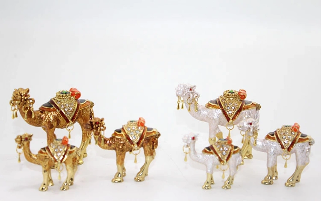 SWAROVSKI TAŞLI 3'LÜ DEVE FİGÜRÜ MODEL 3Ürün ÖzellikleriSwarovski Taşlı 3'lü Deve Figürü Model 3, zarif ve estetik tasarımı ile dikkat çeker. Swarovski taşları ile süslenmiş bu figür seti, ev dekorasyonunuza şıklık katar. Set, 7x6x5 cm boyutlarında üç adet deve figüründen oluşmaktadır. Her bir figür ince işçilikle tasarlanmış ve dayanıklı malzeme kullanılarak üretilmiştir. Hem modern hem de klasik dekorasyon tarzlarına uyum sağlar.Paket İçeriği3 Adet Swarovski Taşlı Deve Figürü