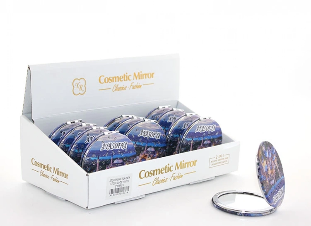 TAŞLI İSTANBUL TASARIMI EL AYNASI İNCE MODEL 5Ürün ÖzellikleriTaşlı İstanbul Tasarımı El Aynası İnce Model 5, Ayasofya'nın zarif bir şekilde tasvir edildiği ve taş detaylarıyla süslenmiş şık bir el aynasıdır. İnce model tasarımı ile hafif ve taşınabilir olup, dayanıklı malzeme ile üretilmiştir. Ayasofya yazılı tasarımı, İstanbul’un tarihi simgesini estetik bir biçimde sunarken, taşlı detaylar aynaya zarif bir şıklık katar. Ergonomik yapısı sayesinde rahat bir kullanım sunar. Hem kişisel kullanım hem de hediye olarak mükemmel bir tercih sunar.Paket İçeriği1 adet Taşlı İstanbul Tasarımı El Aynası İnce Model 5