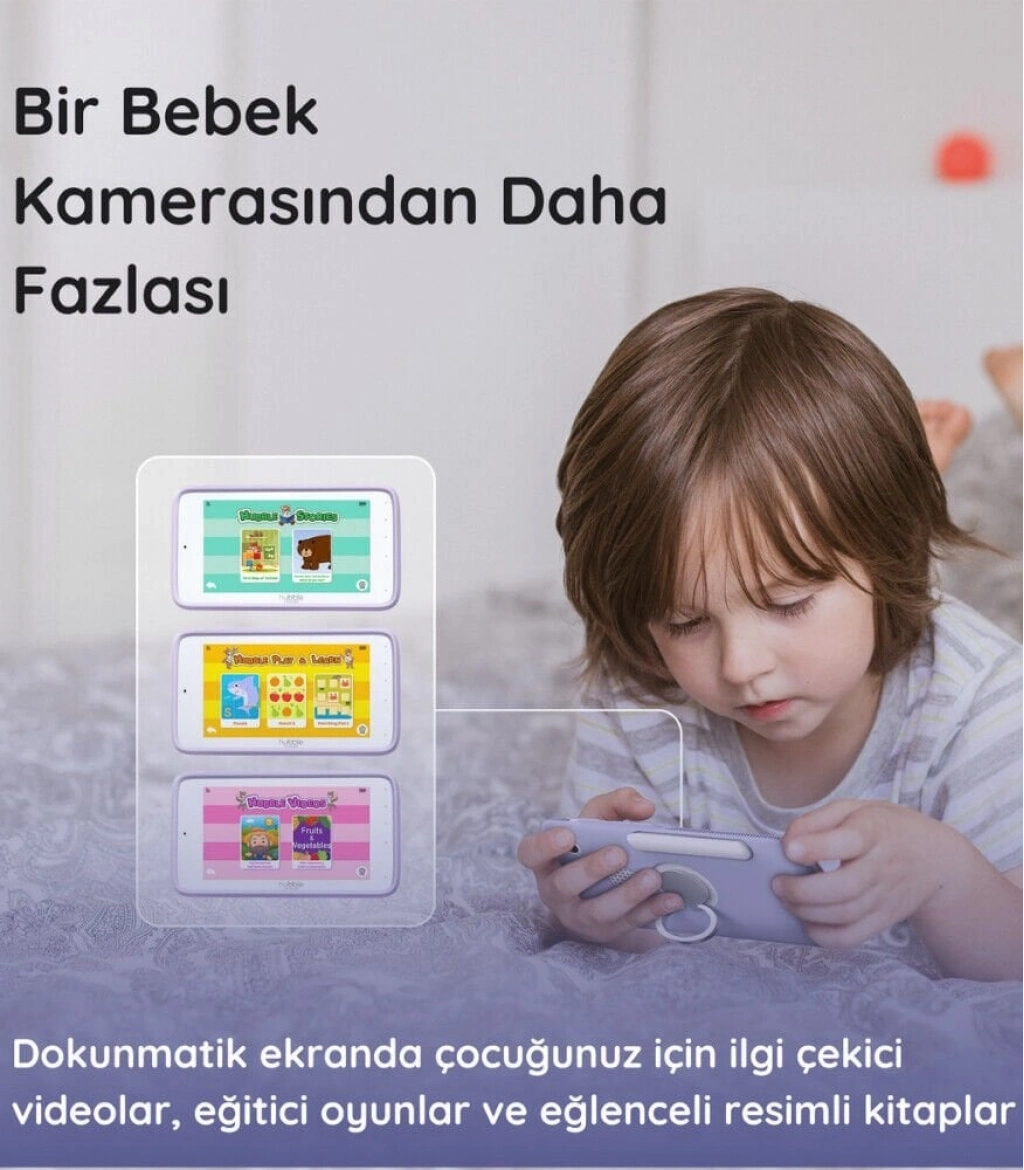 Bir bebek kamerasından daha fazlası! Nursery Pal Deluxe bebek monitörü sadece ebeveynler için değil, tüm ailenin kullanımı için tasarlandı. Bu yenilikçi Hubble ürünü 5″ HD renkli dokunmatik ekranıyla, çocukların büyüme süreçlerinde faydalanabilecekleri videolar, resimli kitaplar ve oyunlar içeriyor. Dahili batarya içeren portatif kamera, görüntü kaybı olmadan evin içinde dolaşırken kullanılabiliyor. Birlikte verilen Hubble Grip ayaklıklar sayesinde kamera herhangi bir yüzeye rahatlıkla monte edilebiliyor.