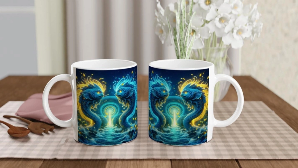 İkizler Burcu Baskılı Kahve Kupası - Astral Denizaltı Dünyası Vs3