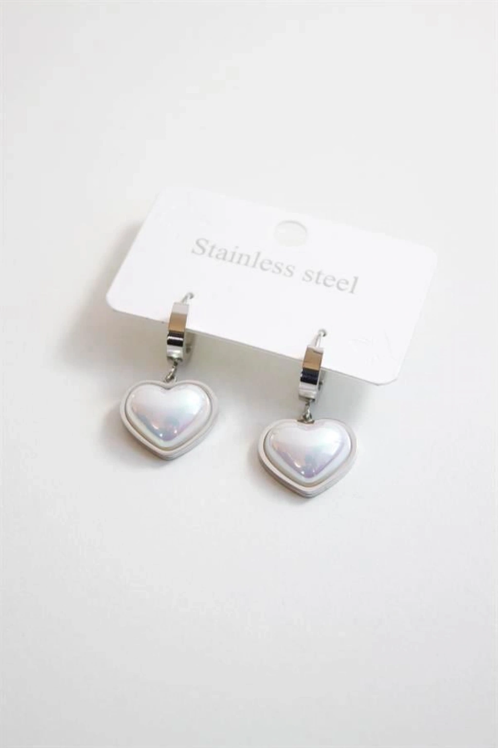 İncili Çelik Kalp Küpe - Gümüş
