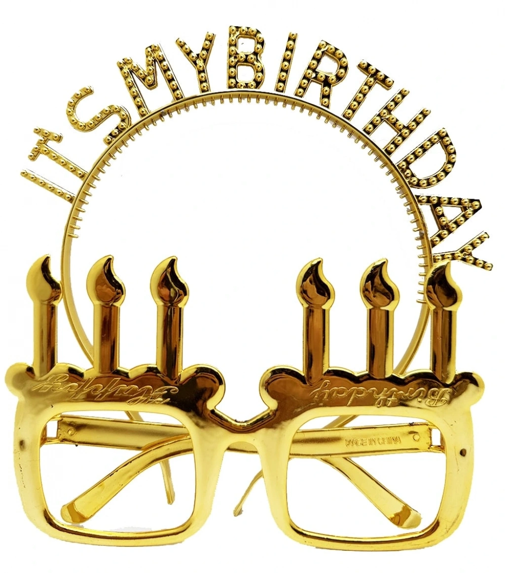İt's My Birthday Yazılı Taç Ve Mum Şekilli Gözlük Seti Altın Renk