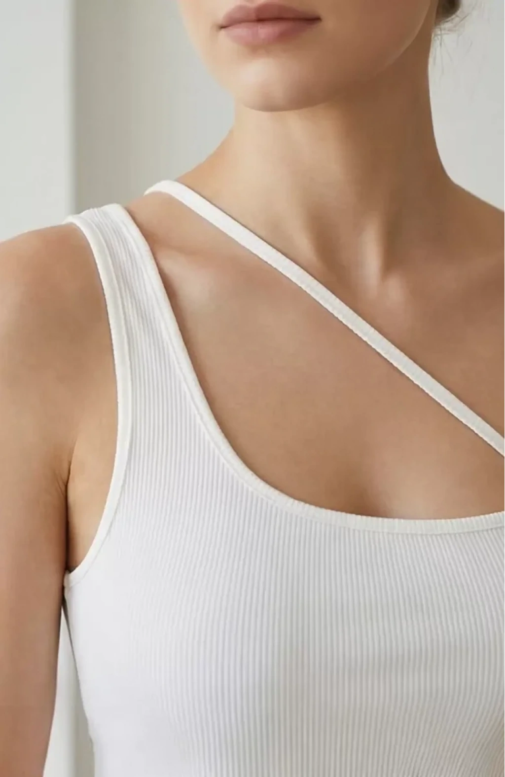 Kadın Beyaz Tek Omuzlu Çapraz Askılı Crop Top Büstiyer