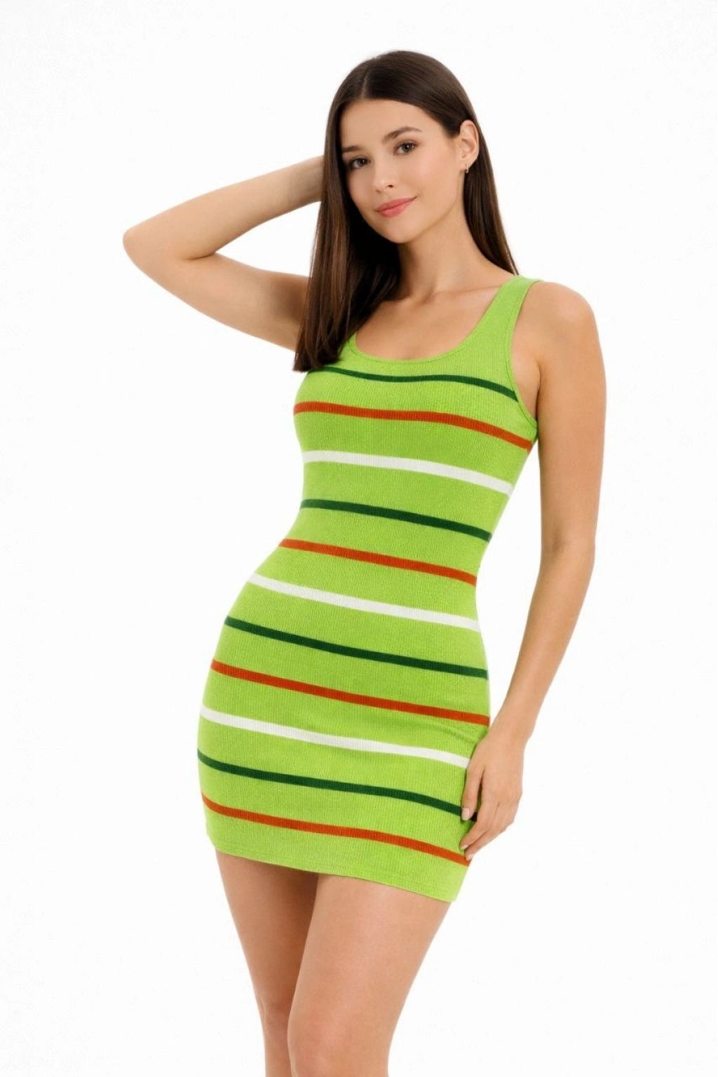 Kadın Kare Yaka Midi Boy Likralı Polelit Elbise - Çimen Yeşili