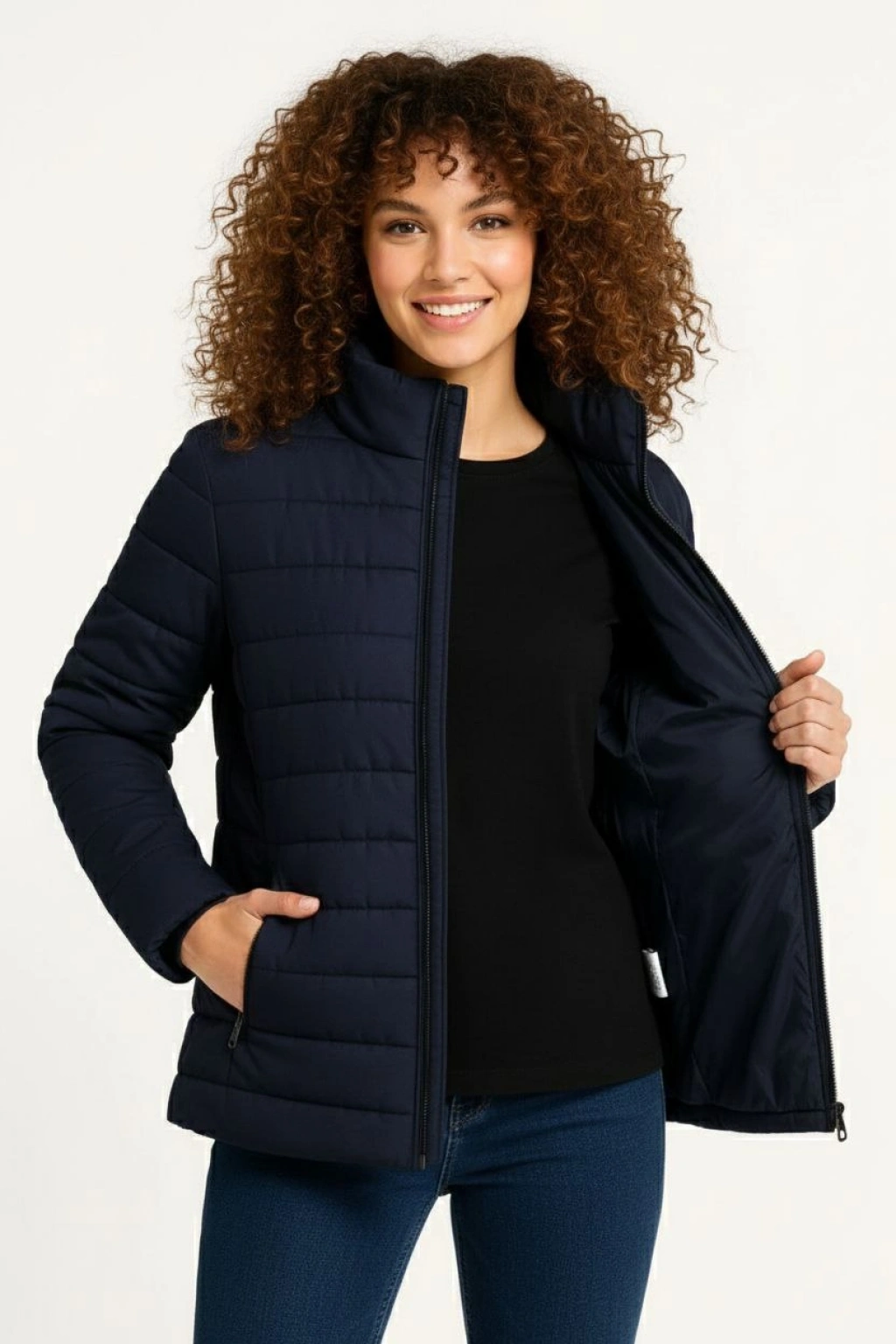 Kadın Mikro Su İtici Kapitone Baskılı Astarlı Fermuarlı Bomber Mont - Lacivert