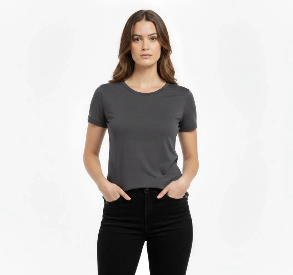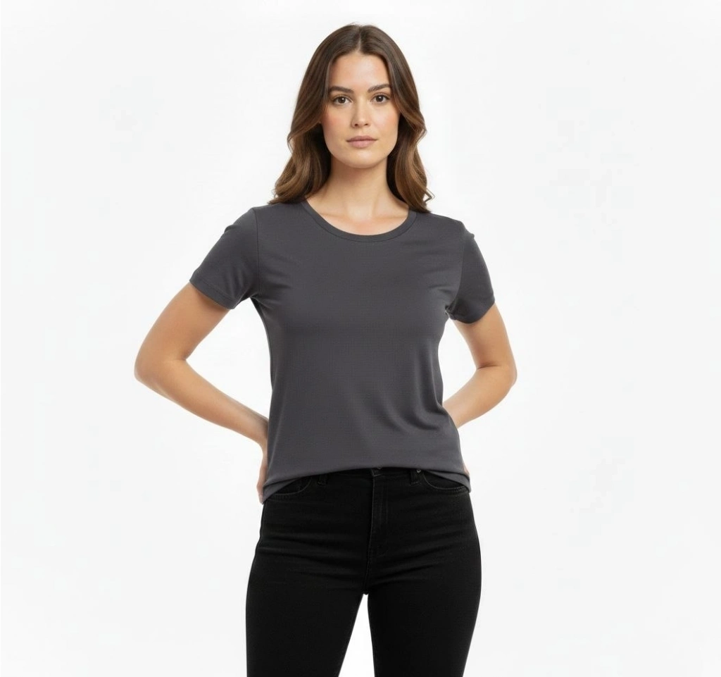 Kadın T-Shirt Bisiklet Yaka Slim Fit Likralı Tişört Günlük Basic Body - Füme