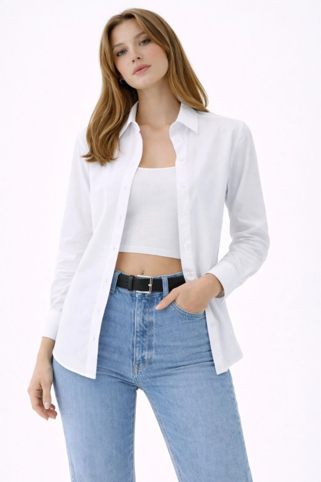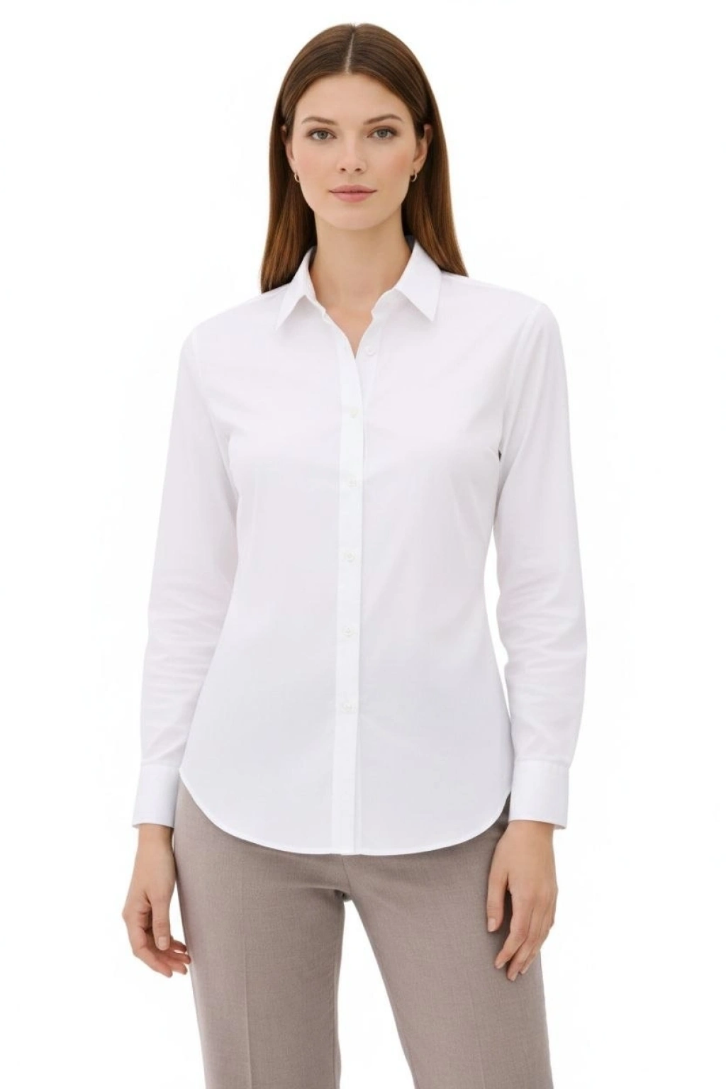 Kadın Uzun Kollu Gömlek Düğmeli Klasik Yaka Günlük ve Ofis Şıklığına uygun - Beyaz