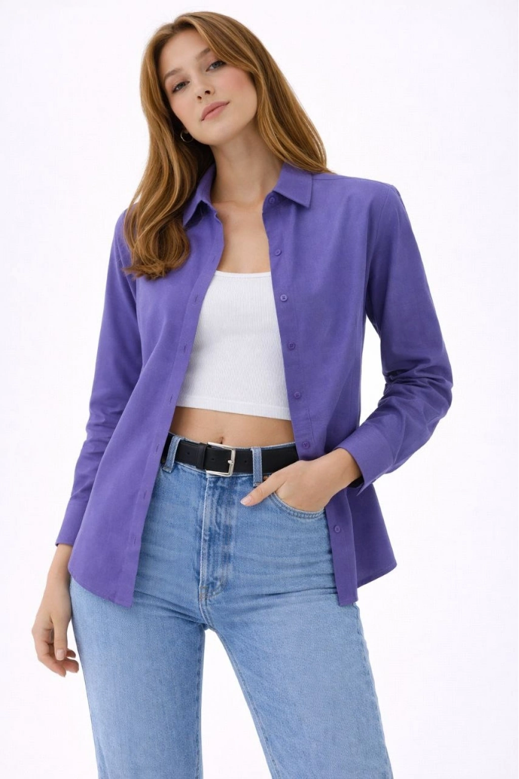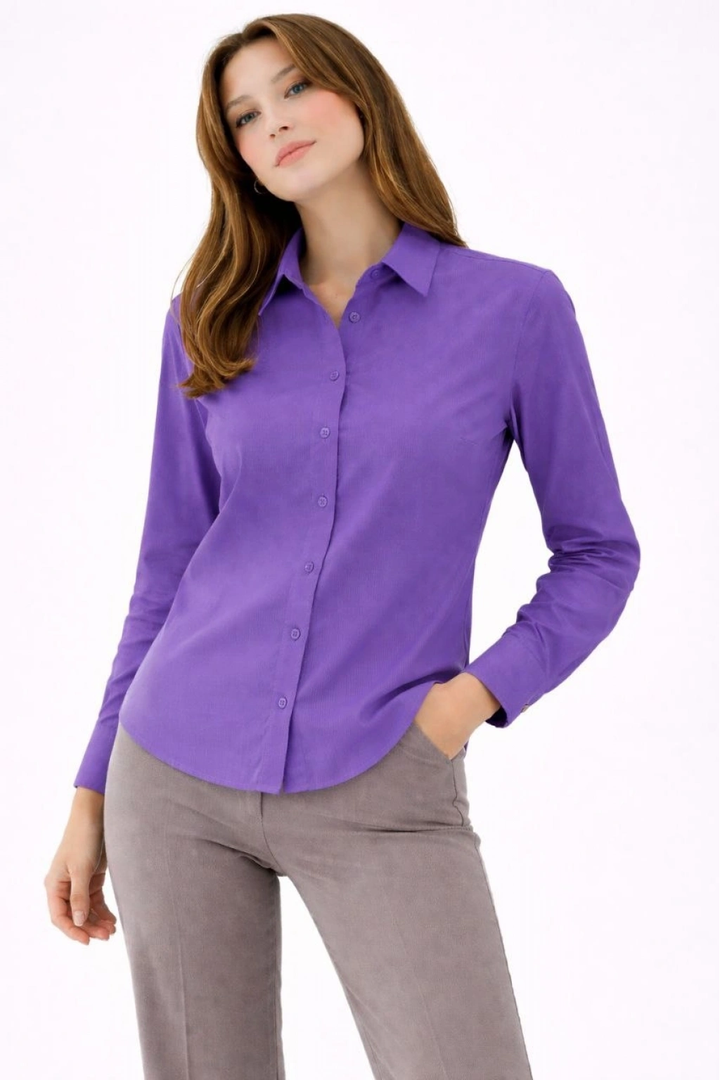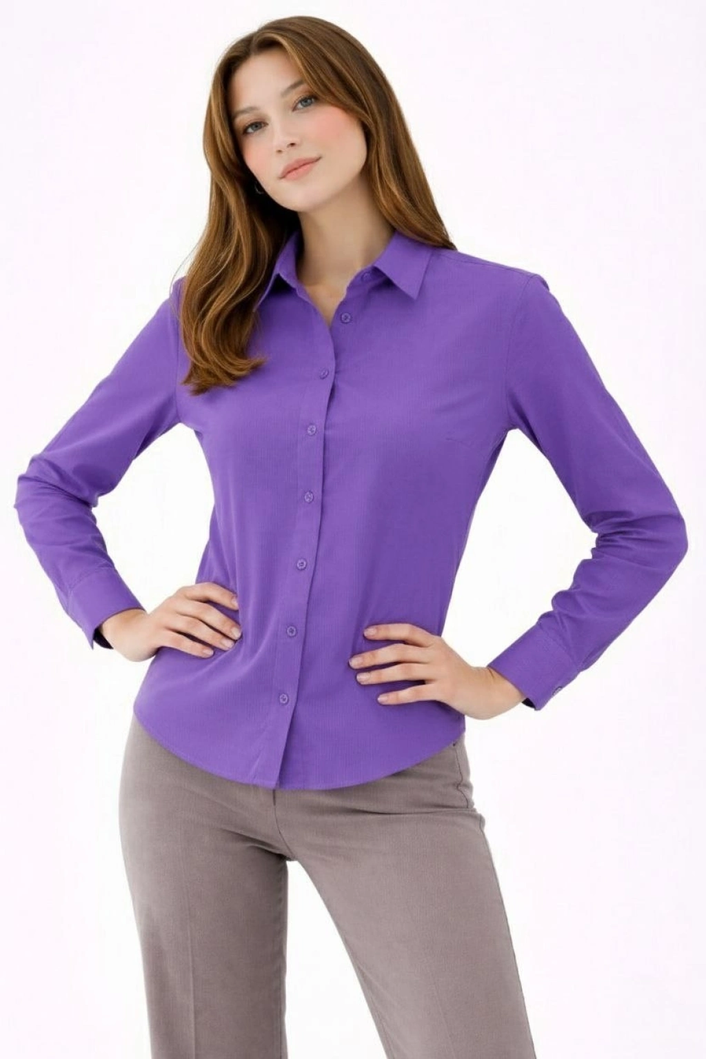Kadın Uzun Kollu Gömlek Düğmeli Klasik Yaka Günlük ve Ofis Şıklığına uygun - Mor