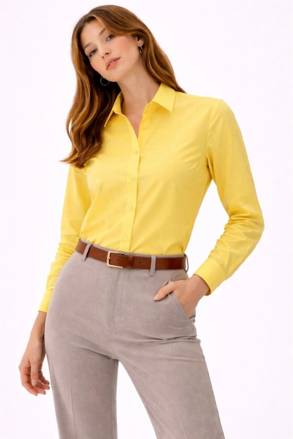 Kadın Uzun Kollu Gömlek Düğmeli Klasik Yaka Günlük ve Ofis Şıklığına uygun - Sarı