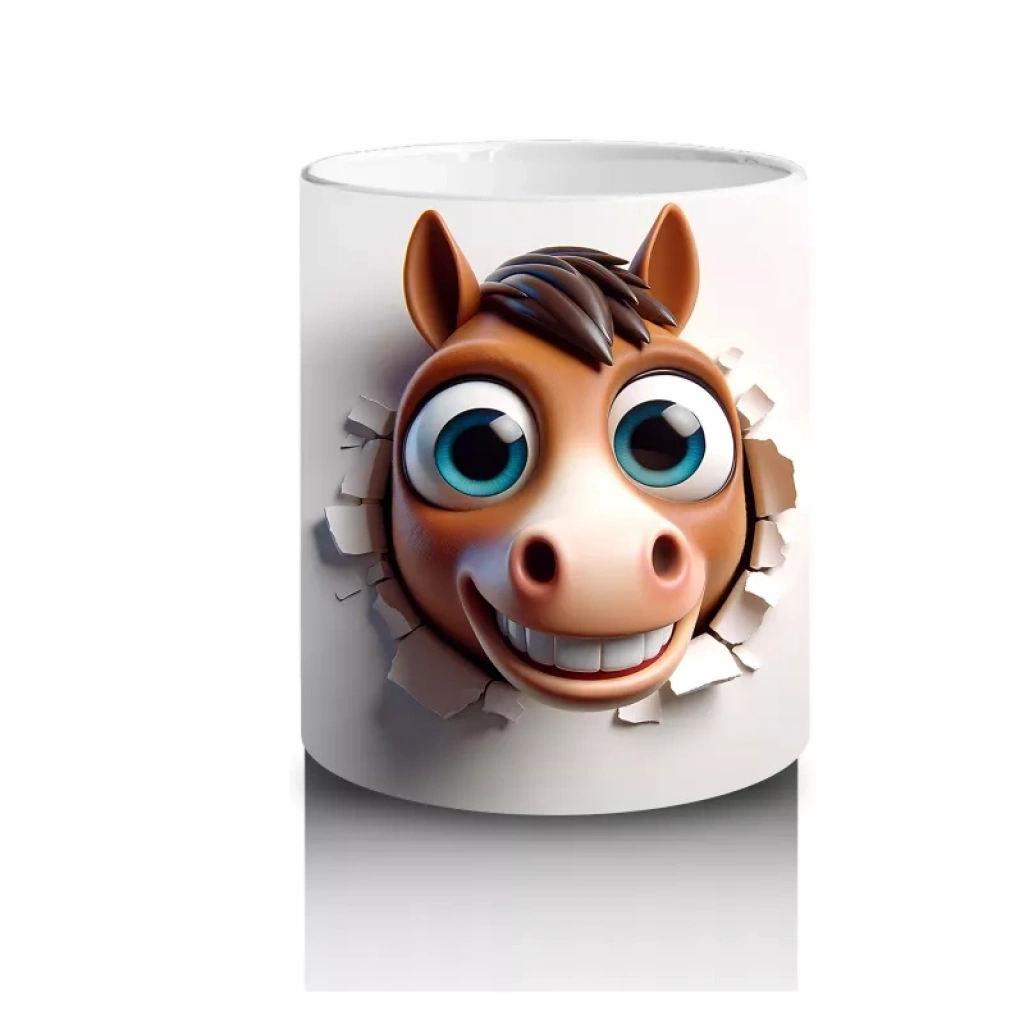 Meraklı bakışlarıyla kafasını uzatmış bu sevimli kahverengi at, doğal ve samimi bir atmosfer sunuyor. At severler ve kırsal yaşamdan ilham alan tasarımları sevenler için özgün bir seçenek.